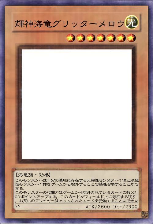 このモンスターは自分の墓地に存在する光属性モンスター1体と水属性モンスター1体をゲームから除外することで特殊召喚することができる。 このモンスターの攻撃力はゲームから除外されているカードの数×200ポイントアップする。このカードがフィールド上に存在する限り、お互いのプレイヤーはセットされたカードを発動することはできない。 |
