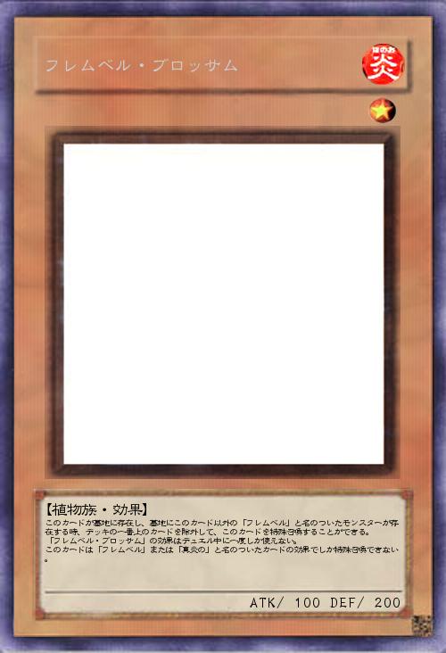 このカードが墓地に存在し、墓地にこのカード以外の「フレムベル」と名のついたモンスターが存在する時、デッキの一番上のカードを除外して、このカードを特殊召喚することができる。 「フレムベル・ブロッサム」の効果はデュエル中に一度しか使えない。 このカードは「フレムベル」または「真炎の」と名のついたカードの効果でしか特殊召喚できない。 |