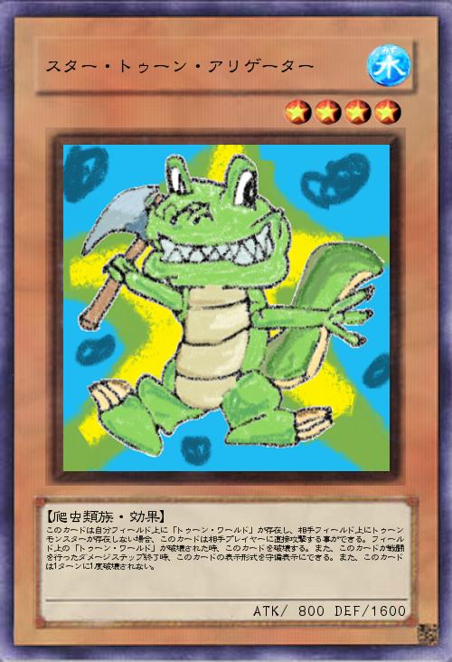 「トゥーンモンスターになれなかったトゥーンアリゲーターのリメイク。召喚酔い無し、なかなかウザい効果。」(2013-01-06 22:31)