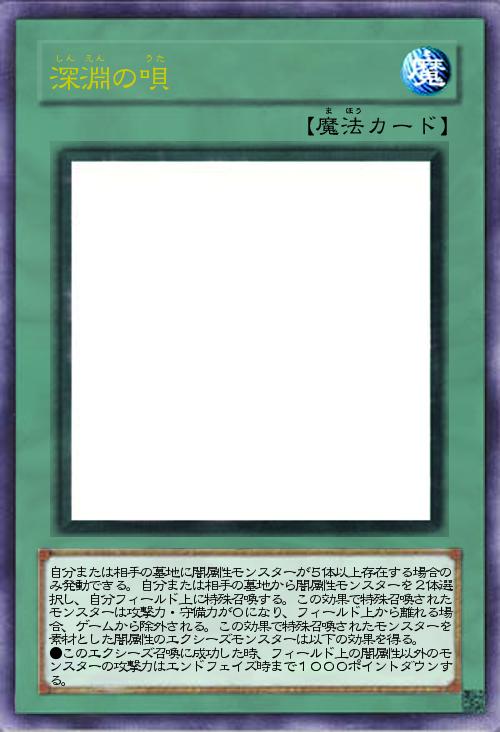 自分または相手の墓地に闇属性モンスターが5体以上存在する場合のみ発動できる。自分または相手の墓地から闇属性モンスターを2体選択し、自分フィールド上に特殊召喚する。この効果で特殊召喚されたモンスターは攻撃力・守備力が0になり、フィールド上から離れる場合、ゲームから除外される。この効果で特殊召喚されたモンスターを素材とした闇属性のエクシーズモンスターは以下の効果を得る。 ●このエクシーズ召喚に成功した時、フィールド上の闇属性以外のモンスターの攻撃力はエンドフェイズ時まで1000ポイントダウンする。 |