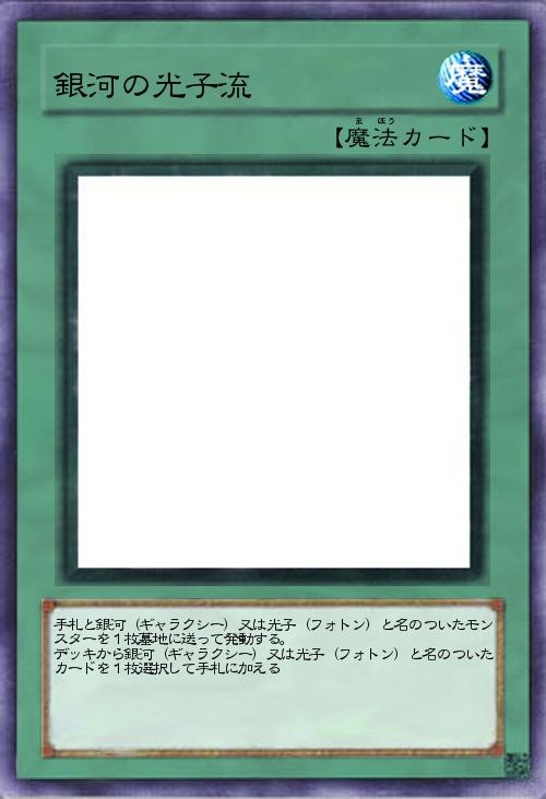 手札と銀河(ギャラクシー)又は光子(フォトン)と名のついたモンスターを1枚墓地に送って発動する。 デッキから銀河(ギャラクシー)又は光子(フォトン)と名のついたカードを1枚選択して手札に加える |