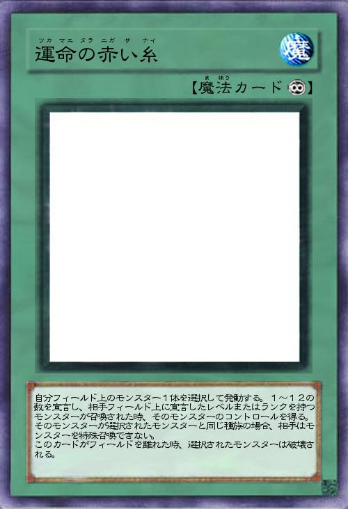 自分フィールド上のモンスター1体を選択して発動する。1~12の数を宣言し、相手フィールド上に宣言したレベルまたはランクを持つモンスターが召喚された時、そのモンスターのコントロールを得る。そのモンスターが選択されたモンスターと同じ種族の場合、相手はモンスターを特殊召喚できない。 このカードがフィールドを離れた時、選択されたモンスターは破壊される。 |