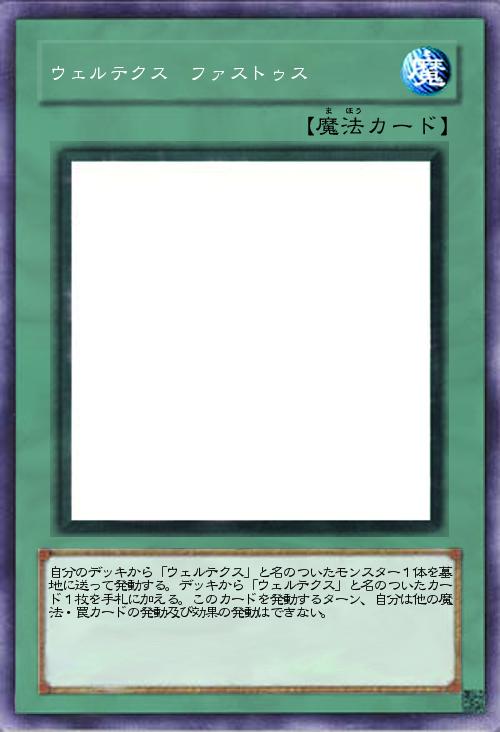 | 自分のデッキから「ウェルテクス」と名のついたモンスター1体を墓地に送って発動する。デッキから「ウェルテクス」と名のついたカード1枚を手札に加える。このカードを発動するターン、自分は他の魔法・罠カードの発動及び効果の発動はできない。 | |||