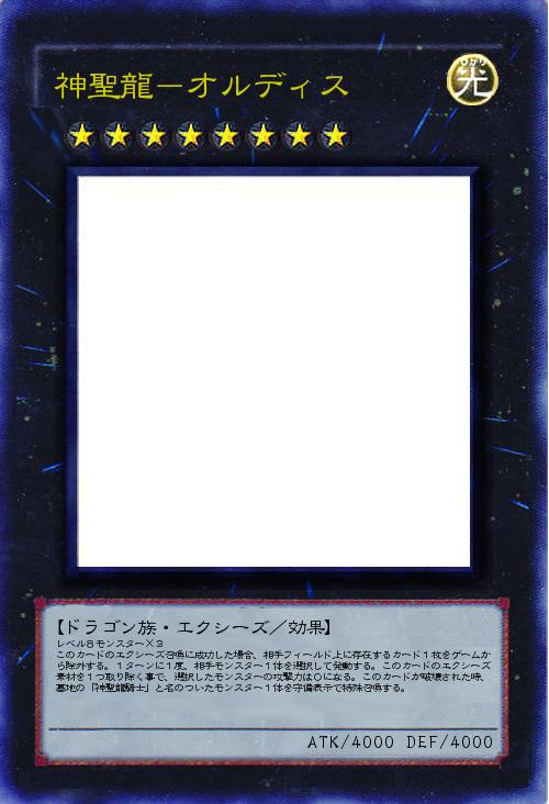 レベル8モンスター×3 このカードのエクシーズ召喚に成功した場合、相手フィールド上に存在するカード1枚をゲームから除外する。1ターンに1度、相手モンスター1体を選択して発動する。このカードのエクシーズ素材を1つ取り除く事で、選択したモンスターの攻撃力は0になる。このカードが破壊された時、墓地の「神聖龍騎士」と名のついたモンスター1体を守備表示で特殊召喚する。 |