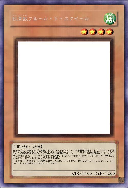 自分の手札に存在する「紋章獣」と名のついたモンスター1体を墓地に送ることで、このカードは手札から特殊召喚できる。この効果での「紋章獣フルール・ド・リス」の特殊召喚は1ターンに一度しか行えない。このカードを含む「紋章獣」と名のついたモンスターのみをエクシーズ素材としたエクシーズモンスターは以下の効果を得る。 ・このカードがエクシーズ召喚に成功したとき、デッキから「RUM-リミテッド・バリアンズ・フォース」1枚を手札に加えることができる。 |
