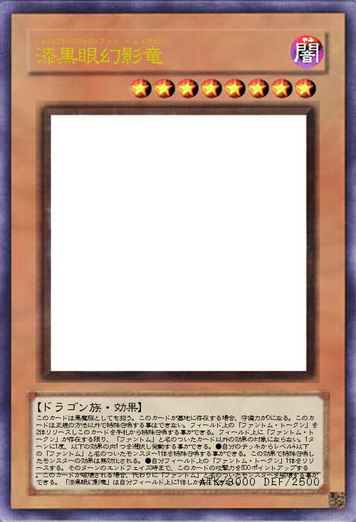 「ファントムの切り札モンスターです。色々と規制もあり、幻影騎士の効果で出せないと言う欠点がありますが、他のドラゴンにご期待を。」(2013-01-30 18:13)