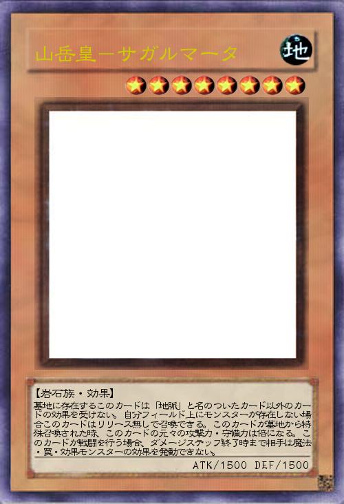 「新カテゴリ【山岳皇】墓地に存在するとき「地脈」以外のカードの効果を受けない超脳筋デッキです。イメージを持ちやすいように先に切り札級を紹介します。サガルマータのようにレベル8の山岳皇を墓地から特殊召喚してビートしていくデッキです。除去カードは一切登場しません(´ー`)(ぇ」(2013-02-02 13:04)