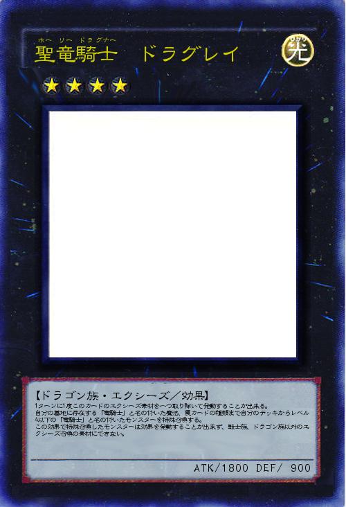 1ターンに1度このカードのエクシーズ素材を一つ取り除いて発動することが出来る。 自分の墓地に存在する「竜騎士」と名の付いた魔法、罠カードの種類まで自分のデッキからレベル4以下の「竜騎士」と名の付いたモンスターを特殊召喚する。 この効果で特殊召喚したモンスターは効果を発動することが出来ず、戦士族、ドラゴン族以外のエクシーズ召喚の素材にできない。 |
