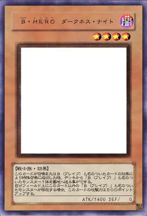このカードが召喚またはB(ブレイブ)と名のついたカードの効果により特殊召喚に成功した時、デッキから「B(ブレイブ)」と名のついたモンスター1体を墓地へ送る事ができる。 自分フィールド上にこのカード以外の「B(ブレイブ)」と名のついたモンスターが存在する場合、このカードの攻撃力は500ポイントアップする。 |