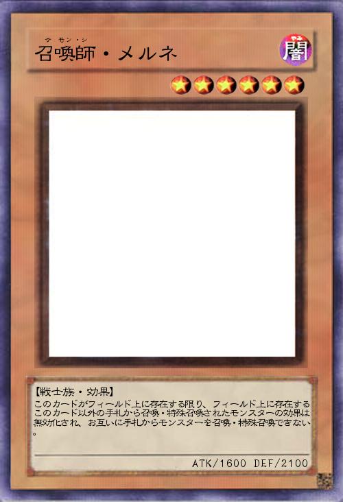 | このカードがフィールド上に存在する限り、フィールド上に存在するこのカード以外の手札から召喚・特殊召喚されたモンスターの効果は無効化され、お互いに手札からモンスターを召喚・特殊召喚できない。 | |||