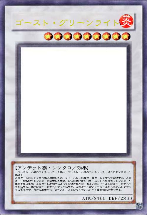 「ゴースト」と名のつくチューナー1体+「ゴースト」と名のつくチューナー以外のモンスター1体以上 このカードのシンクロ召喚に成功した時、フィールド上の魔法・罠カードをすべて破壊する。このカードが戦闘でモンスターを破壊した場合、自分の墓地から「ゴースト」と名のつくモンスター1体を手札に戻す。このカードが相手によって破壊された時、お互いのフィールドのカードをすべて手札に戻し、墓地のカードをすべてデッキに戻す。このカードがフィールド上からエクストラデッキに戻った時、自分の墓地から「ゴースト」と名のつくモンスター1体を特殊召喚できる。 |