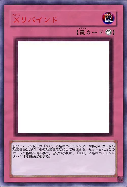 | 自分フィールド上の「XC」と名のつくモンスターが相手のカードの効果を受けた時、その効果を無効にして破壊する。セットされたこのカードを墓地へ送る事で、自分の手札から「XC」と名のつくモンスター1体を特殊召喚する。 | |||