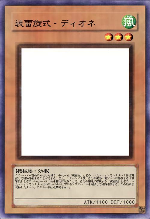 | このカードが召喚に成功した場合、手札から「装雷旋」と名のついたユニオンモンスター1体を選択して特殊召喚することができる。また、1ターンに1度、自分の魔法・罠ゾーンに存在する「装雷旋」と名のついたカード1枚を墓地に送ることで、自分の墓地に存在する「装雷旋」と名のついたユニオンモンスター以外のレベル4以下のモンスター1体を選択して特殊召喚する。この効果を発動したターン、このカードは攻撃できない。 | |||