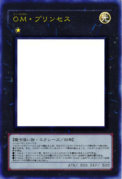 レベル1モンスター×3 このカードがフィールド上から離れるとき、代わりにこのカードのエクシーズ素材を一つ取り除く事ができる。また、このカードが持っているエクシーズ素材の数によって、このカードは以下の効果を得る。 ●1つ以上:1ターンに1度、自分フィールド上のカードを墓地に送ることができる。 ●2つ以上:自分フィールドの上の攻撃力500以下のモンスターは相手に直接攻撃できる。 ●3つ以上:自分フィールド上に存在するこのカード以外の「OM」と名のついたモンスターは相手のカードの効果の対象にならない。 |