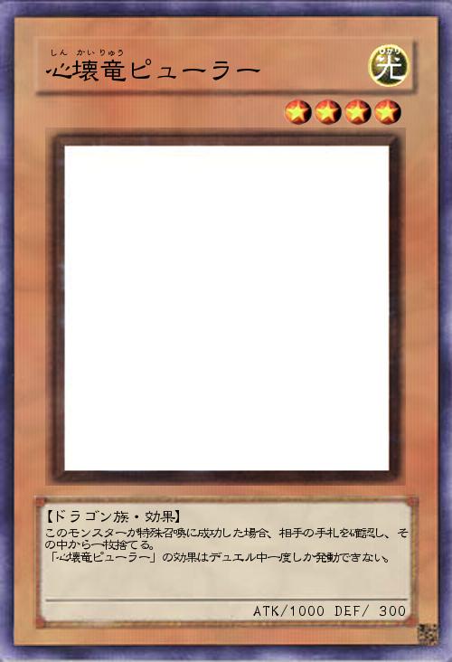 このモンスターが特殊召喚に成功した場合、相手の手札を確認し、その中から一枚捨てる。 「心壊竜ピューラー」の効果はデュエル中一度しか発動できない。 |