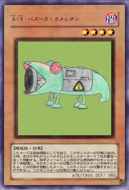 | このカードは爬虫類族としても扱う。このモンスターが召喚に成功した時、自分の手札からレベル5以上のモンスターカード1枚を墓地へ送って発動する。相手フィールド上に存在する表側表示のモンスターを1体破壊し、そのモンスターの攻撃力の半分のダメージを相手に与える。この効果を発動したターン、このモンスターは攻撃をすることができない。このモンスターは効果の対象にならない。 | |||