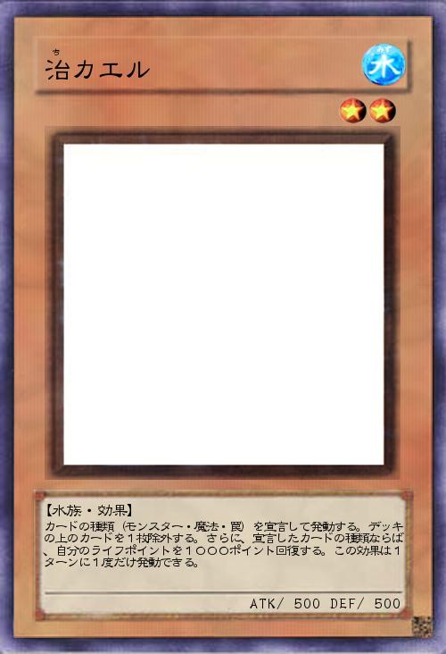 | カードの種類(モンスター・魔法・罠)を宣言して発動する。デッキの上のカードを1枚除外する。さらに、宣言したカードの種類ならば、自分のライフポイントを1000ポイント回復する。この効果は1ターンに1度だけ発動できる。 | |||