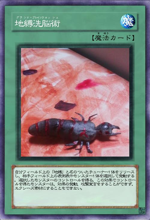 | 自分フィールド上の「地縛」と名のついたチューナー1体をリリースし、相手フィールド上の表側表示モンスター1体を選択して発動する。選択したモンスターのコントロールを得る。この効果でコントロールを得たモンスターは、効果の発動、攻撃宣言をすることができず、エクシーズ素材にすることもできない。 | |||