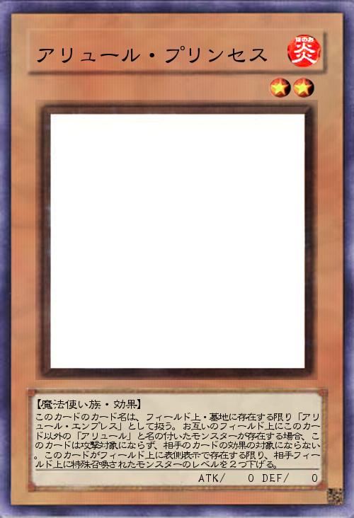 | このカードのカード名は、フィールド上・墓地に存在する限り「アリュール・エンプレス」として扱う。お互いのフィールド上にこのカード以外の「アリュール」と名の付いたモンスターが存在する場合、このカードは攻撃対象にならず、相手のカードの効果の対象にならない。このカードがフィールド上に表側表示で存在する限り、相手フィールド上に特殊召喚されたモンスターのレベルを2つ下げる。 | |||