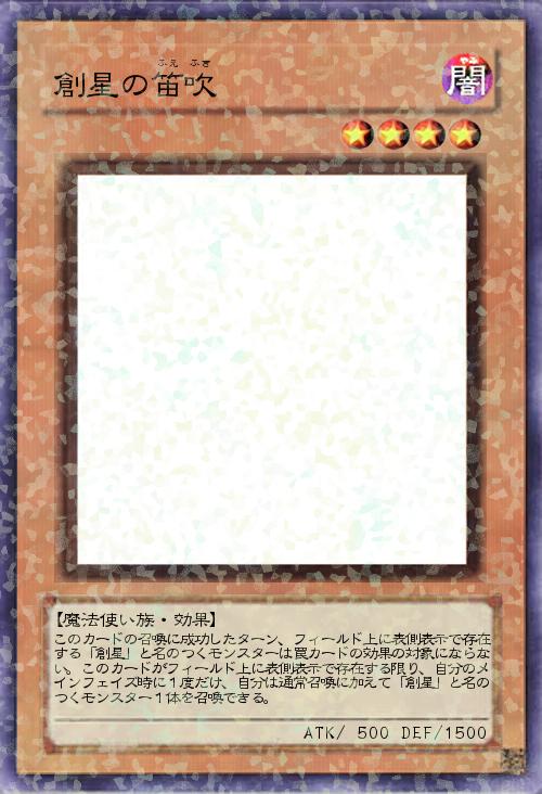 | このカードの召喚に成功したターン、フィールド上に表側表示で存在する「創星」と名のつくモンスターは罠カードの効果の対象にならない。このカードがフィールド上に表側表示で存在する限り、自分のメインフェイズ時に1度だけ、自分は通常召喚に加えて「創星」と名のつくモンスター1体を召喚できる。 | |||
