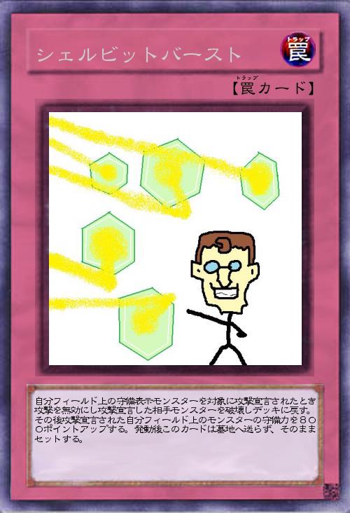 | 自分フィールド上の守備表示モンスターを対象に攻撃宣言されたとき攻撃を無効にし攻撃宣言した相手モンスターを破壊しデッキに戻す。その後攻撃宣言された自分フィールド上のモンスターの守備力を800ポイントアップする。発動後このカードは墓地へ送らず、そのままセットする。 | |||
