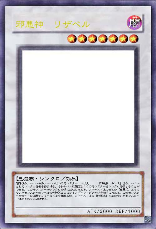 | 闇属性チューナー+チューナー以外のモンスター1体以上 「邪悪兵 キシス」をチューナーとしてシンクロ召喚を行う場合、合計レベルに関係なくこのモンスターをシンクロ召喚することができる。このモンスターがシンクロ召喚に成功したとき、フィールド上の全ての「邪悪兵」と名のついたモンスターのレベルの合計×200ライフポイントダメージを相手に与える。このモンスターがカードの効果でフィールド上を離れる時、フィールド上の「邪悪兵」と名のついたモンスター一体を変わりに破壊する。 | |||