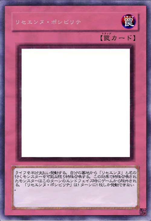 | ライフを半分支払い発動する。自分の墓地から「リセエンヌ」と名の付くモンスターを可能な限り特殊召喚する。この効果で特殊召喚されたモンスターはこのターンのエンドフェイズ時にゲームから除外される。「リセエンヌ・ポシビリテ」は1ターンに1枚しか発動できない。 | |||