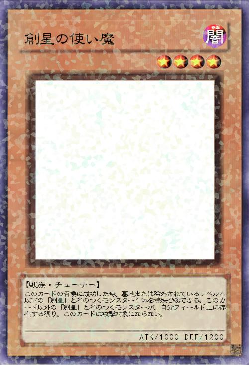 | このカードの召喚に成功した時、墓地または除外されているレベル4以下の「創星」と名のつくモンスター1体を特殊召喚できる。このカード以外の「創星」と名のつくモンスターが、自分フィールド上に存在する限り、このカードは攻撃対象にならない。 | |||