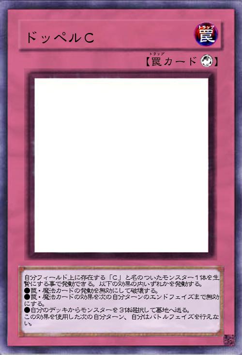 自分フィールド上に存在する「C」と名のついたモンスター1体を生贄にする事で発動できる。以下の効果の内いずれかを発動する。 ●罠・魔法カードの発動を無効にして破壊する。 ●罠・魔法カードの効果を次の自分ターンのエンドフェイズまで無効にする。 ●自分のデッキからモンスターを3体選択して墓地へ送る。 この効果を使用した次の自分ターン、自分はバトルフェイズを行えない。 |