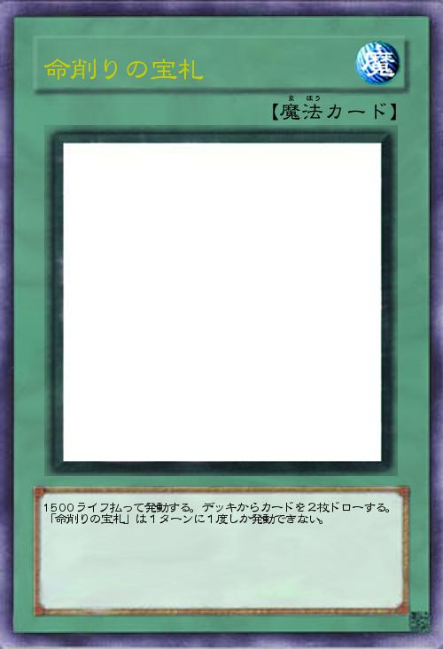 | 1500ライフ払って発動する。デッキからカードを2枚ドローする。「命削りの宝札」は1ターンに1度しか発動できない。 | |||