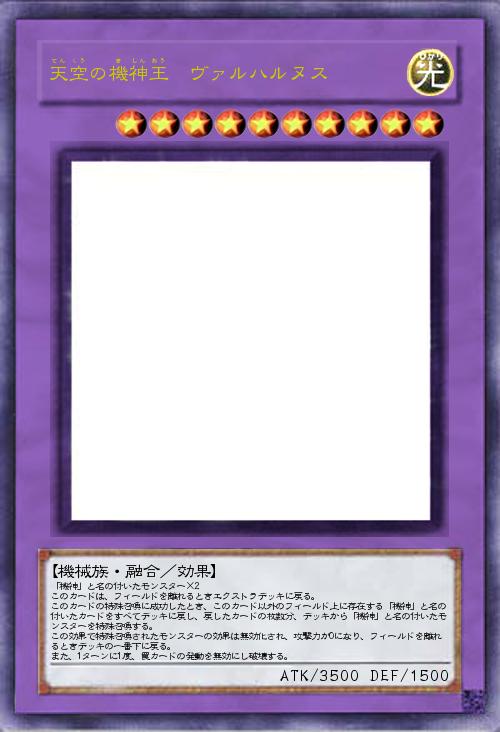 「機神」と名の付いたモンスター×2 このカードは、フィールドを離れるときエクストラデッキに戻る。 このカードの特殊召喚に成功したとき、このカード以外のフィールド上に存在する「機神」と名の付いたカードをすべてデッキに戻し、戻したカードの枚数分、デッキから「機神」と名の付いたモンスターを特殊召喚する。 この効果で特殊召喚されたモンスターの効果は無効化され、攻撃力が0になり、フィールドを離れるときデッキの一番下に戻る。 また、1ターンに1度、罠カードの発動を無効にし破壊する。 |