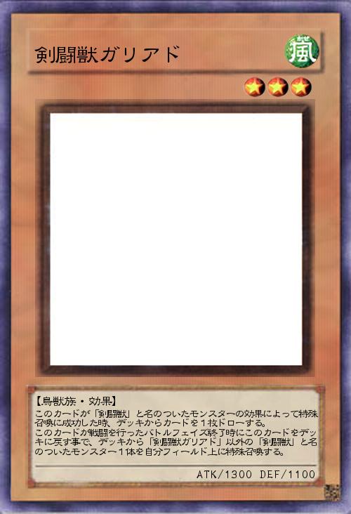 このカードが「剣闘獣」と名のついたモンスターの効果によって特殊召喚に成功した時、デッキからカードを1枚ドローする。 このカードが戦闘を行ったバトルフェイズ終了時にこのカードをデッキに戻す事で、デッキから「剣闘獣ガリアド」以外の「剣闘獣」と名のついたモンスター1体を自分フィールド上に特殊召喚する。 |
