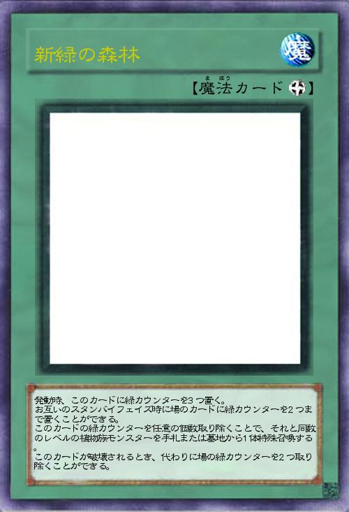 発動時、このカードに緑カウンターを3つ置く。 お互いのスタンバイフェイズ時に場のカードに緑カウンターを2つまで置くことができる。 このカードの緑カウンターを任意の個数取り除くことで、それと同数のレベルの植物族モンスターを手札または墓地から1体特殊召喚する。 このカードが破壊されるとき、代わりに場の緑カウンターを2つ取り除くことができる。 |