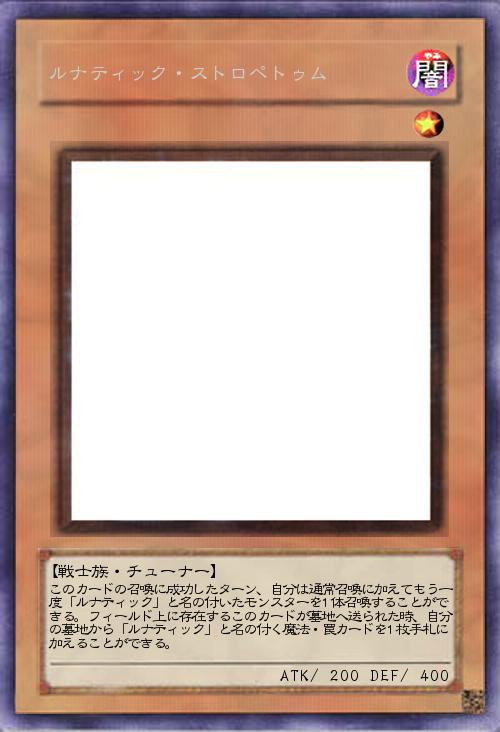 | このカードの召喚に成功したターン、自分は通常召喚に加えてもう一度「ルナティック」と名の付いたモンスターを1体召喚することができる。フィールド上に存在するこのカードが墓地へ送られた時、自分の墓地から「ルナティック」と名の付く魔法・罠カードを1枚手札に加えることができる。 | |||