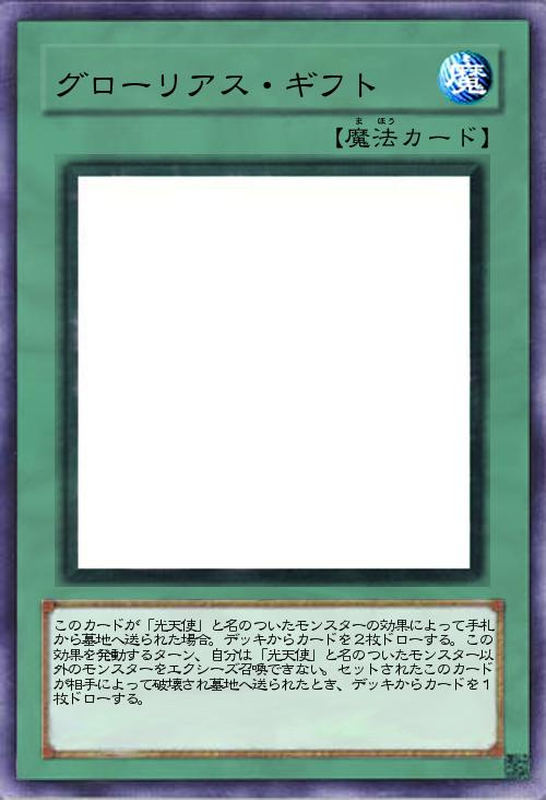 | このカードが「光天使」と名のついたモンスターの効果によって手札から墓地へ送られた場合。デッキからカードを2枚ドローする。この効果を発動するターン、自分は「光天使」と名のついたモンスター以外のモンスターをエクシーズ召喚できない。セットされたこのカードが相手によって破壊され墓地へ送られたとき、デッキからカードを1枚ドローする。 | |||
