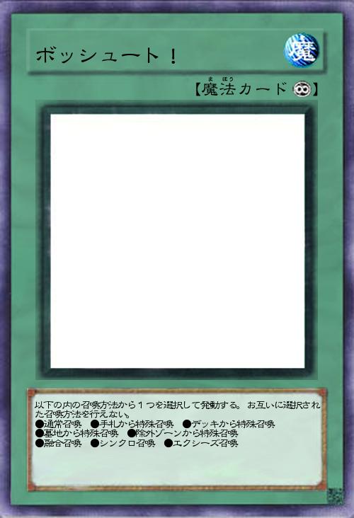 以下の内の召喚方法から1つを選択して発動する。お互いに選択された召喚方法を行えない。 ●通常召喚 ●手札から特殊召喚 ●デッキから特殊召喚 ●墓地から特殊召喚 ●除外ゾーンから特殊召喚 ●融合召喚 ●シンクロ召喚 ●エクシーズ召喚 |