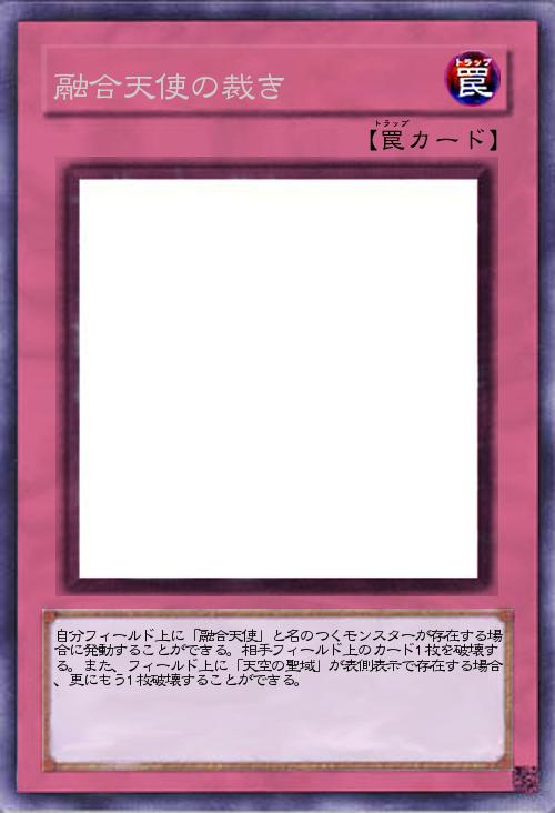 | 自分フィールド上に「融合天使」と名のつくモンスターが存在する場合に発動することができる。相手フィールド上のカード1枚を破壊する。また、フィールド上に「天空の聖域」が表側表示で存在する場合、更にもう1枚破壊することができる。 | |||