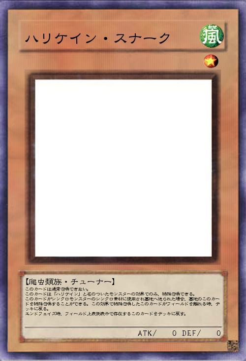 このカードは通常召喚できない。 このカードは「ハリケイン」と名のついたモンスターの効果でのみ、特殊召喚できる。 このカードがシンクロモンスターのシンクロ素材に使用され墓地へ送られた場合、墓地のこのカードを特殊召喚することができる。この効果で特殊召喚したこのカードがフィールドを離れる時、デッキに戻る。 エンドフェイズ時、フィールド上表側表示で存在するこのカードをデッキに戻す。 |