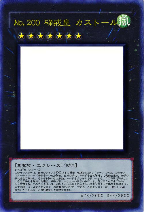 レベル7モンスター×2 このモンスターは、自分のライフが1000以下の場合、破壊されない。1ターンに一度、このモンスターのエクシーズ素材を一つ取り除き、自分の手札のカードを全て除外して発動出来る。相手の手札を全て除外し、それぞれ除外した枚数、カードをデッキからドローする。この効果で5枚以上、自分が手札を除外した場合、相手がドローしたカードを一枚につき、自分のライフを500ポイント回復する。このモンスターは、相手フィールド上にエクシーズモンスターが存在する場合バトルする時、バトルするモンスターの攻撃力の半分アップする。このモンスターは、『No.』と名のついたモンスターとの戦闘でしか破壊できない |