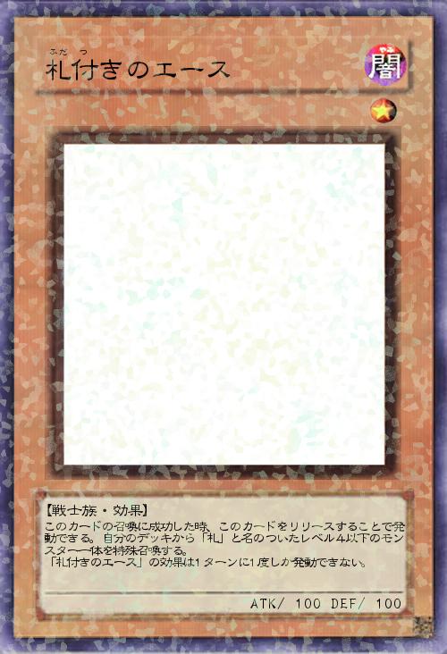 このカードの召喚に成功した時、このカードをリリースすることで発動できる。自分のデッキから「札」と名のついたレベル4以下のモンスター一体を特殊召喚する。 「札付きのエース」の効果は1ターンに1度しか発動できない。 |