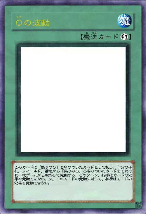 | このカードは「偽りの0」と名のついたカードとして扱う。自分の手札、フィールド、墓地から「偽りの0」と名のついたカードをそれぞれ一枚ゲームから除外して発動する。このターン、相手はカードの効果を発動できない。又、このカードの発動に対して、相手はカードの効果を発動できない。 | |||