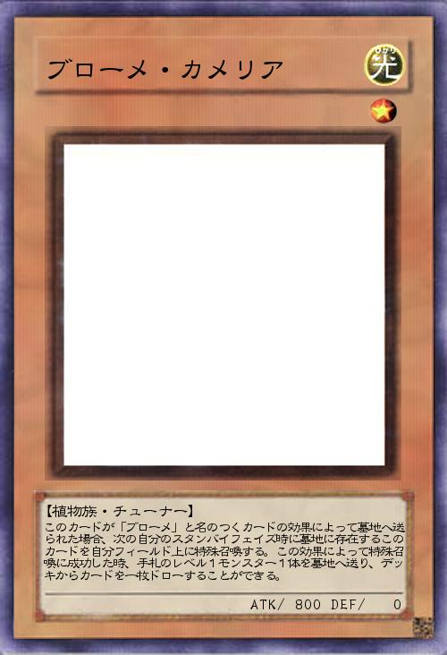 | このカードが「ブローメ」と名のつくカードの効果によって墓地へ送られた場合、次の自分のスタンバイフェイズ時に墓地に存在するこのカードを自分フィールド上に特殊召喚する。この効果によって特殊召喚に成功した時、手札のレベル1モンスター1体を墓地へ送り、デッキからカードを一枚ドローすることができる。 | |||