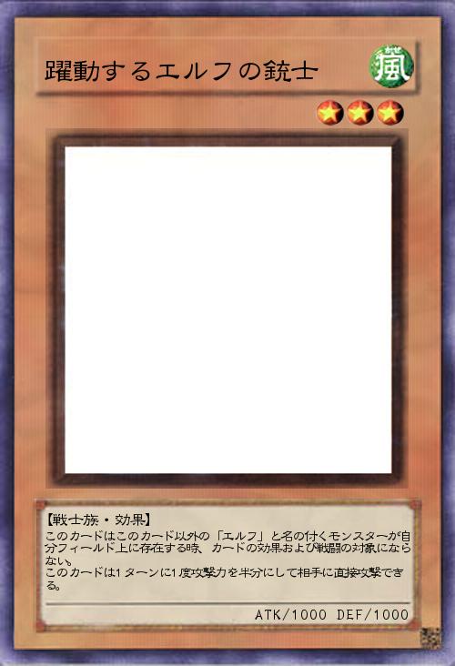 このカードはこのカード以外の「エルフ」と名の付くモンスターが自分フィールド上に存在する時、カードの効果および戦闘の対象にならない。 このカードは1ターンに1度攻撃力を半分にして相手に直接攻撃できる。 |
