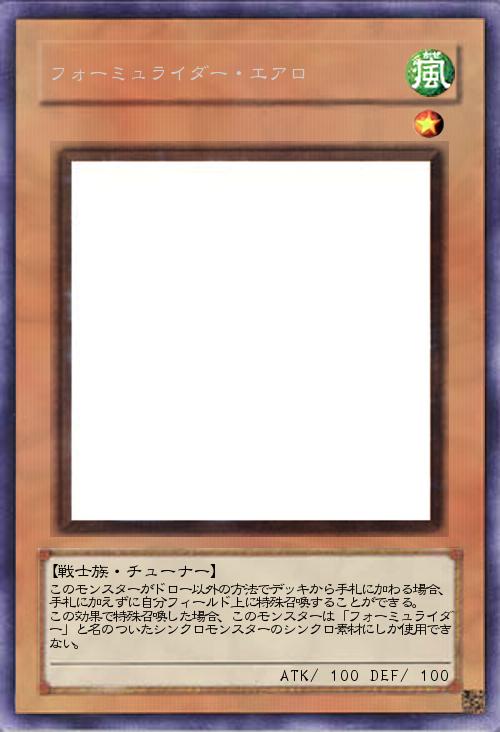 このモンスターがドロー以外の方法でデッキから手札に加わる場合、手札に加えずに自分フィールド上に特殊召喚することができる。 この効果で特殊召喚した場合、このモンスターは「フォーミュライダー」と名のついたシンクロモンスターのシンクロ素材にしか使用できない。 |