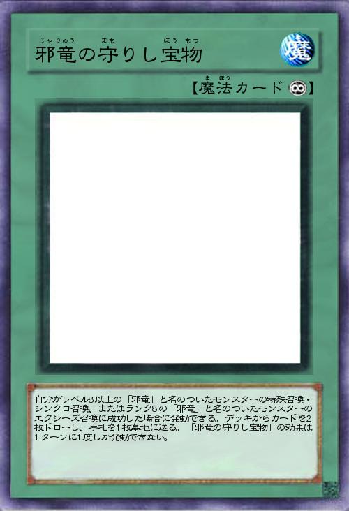 | 自分がレベル8以上の「邪竜」と名のついたモンスターの特殊召喚・シンクロ召喚、またはランク8の「邪竜」と名のついたモンスターのエクシーズ召喚に成功した場合に発動できる。デッキからカードを2枚ドローし、手札を1枚墓地に送る。「邪竜の守りし宝物」の効果は1ターンに1度しか発動できない。 | |||