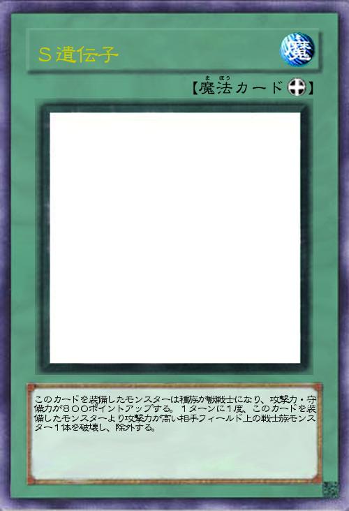 | このカードを装備したモンスターは種族が獣戦士になり、攻撃力・守備力が800ポイントアップする。1ターンに1度、このカードを装備したモンスターより攻撃力が高い相手フィールド上の戦士族モンスター1体を破壊し、除外する。 | |||