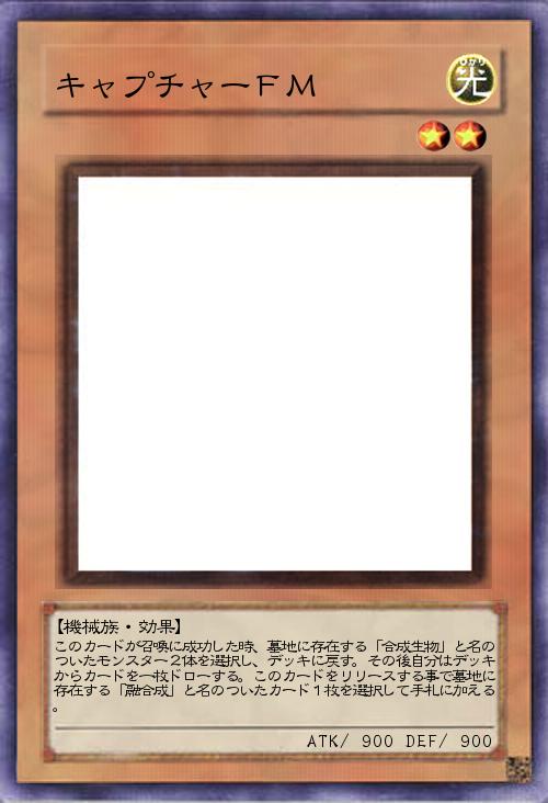 | このカードが召喚に成功した時、墓地に存在する「合成生物」と名のついたモンスター2体を選択し、デッキに戻す。その後自分はデッキからカードを一枚ドローする。このカードをリリースする事で墓地に存在する「融合成」と名のついたカード1枚を選択して手札に加える。 | |||