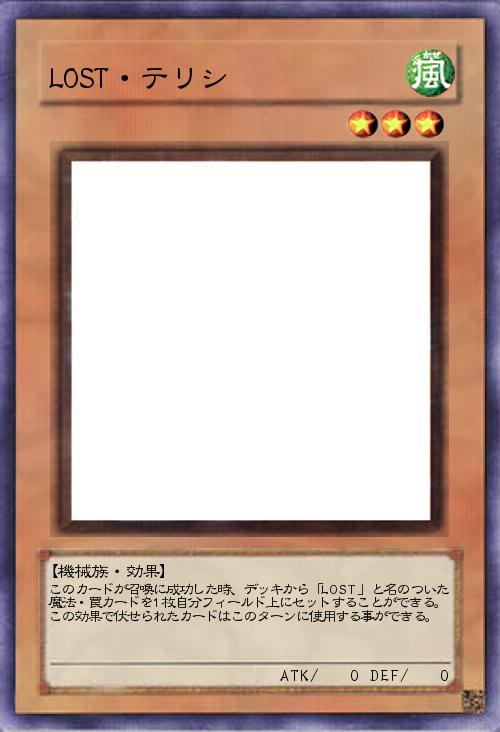 | このカードが召喚に成功した時、デッキから「LOST」と名のついた魔法・罠カードを1枚自分フィールド上にセットすることができる。この効果で伏せられたカードはこのターンに使用する事ができる。 | |||