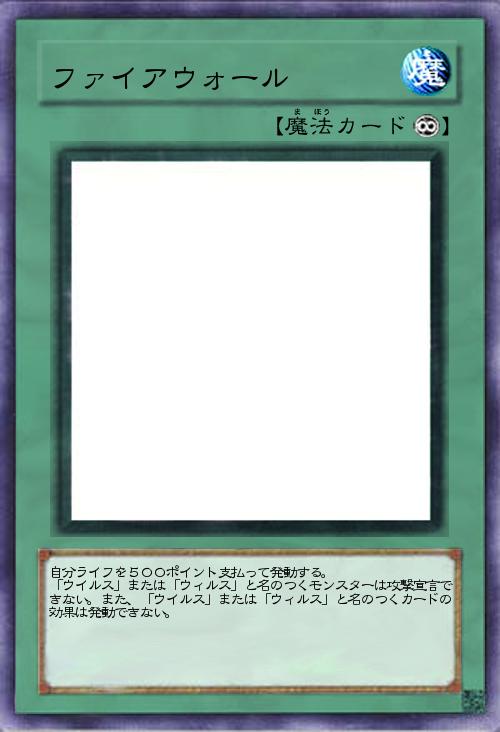 自分ライフを500ポイント支払って発動する。 「ウイルス」または「ウィルス」と名のつくモンスターは攻撃宣言できない。また、「ウイルス」または「ウィルス」と名のつくカードの効果は発動できない。 |