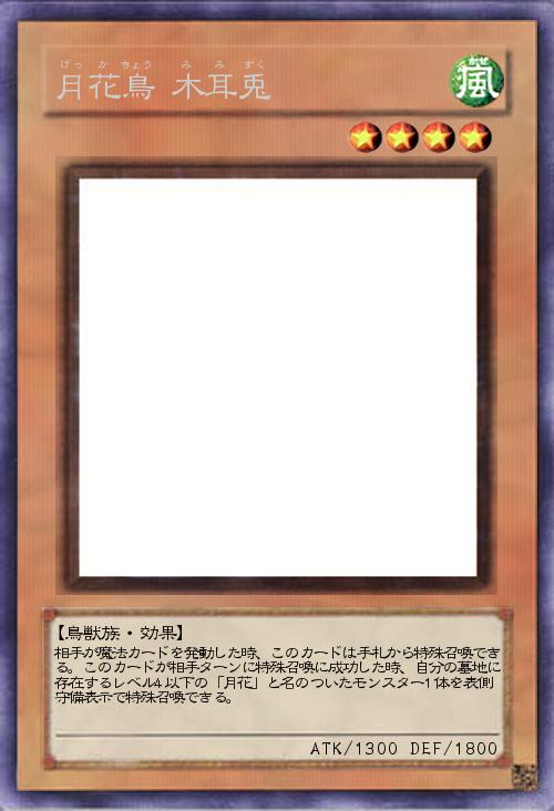 | 相手が魔法カードを発動した時、このカードは手札から特殊召喚できる。このカードが相手ターンに特殊召喚に成功した時、自分の墓地に存在するレベル4以下の「月花」と名のついたモンスター1体を表側守備表示で特殊召喚できる。 | |||
